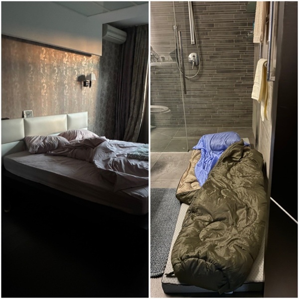 Till sist, låt mig dela med mig av mina två ”sovrum”. Ibland sover jag en hel natt i det ena eller andra, men lika ofta tillbringar jag delar av natten i båda. Men båda är alltså oändligt mycket bättre än garaget. Och nej, jag har inte varit rädd, men det är rejält obehagligt med attackerna.